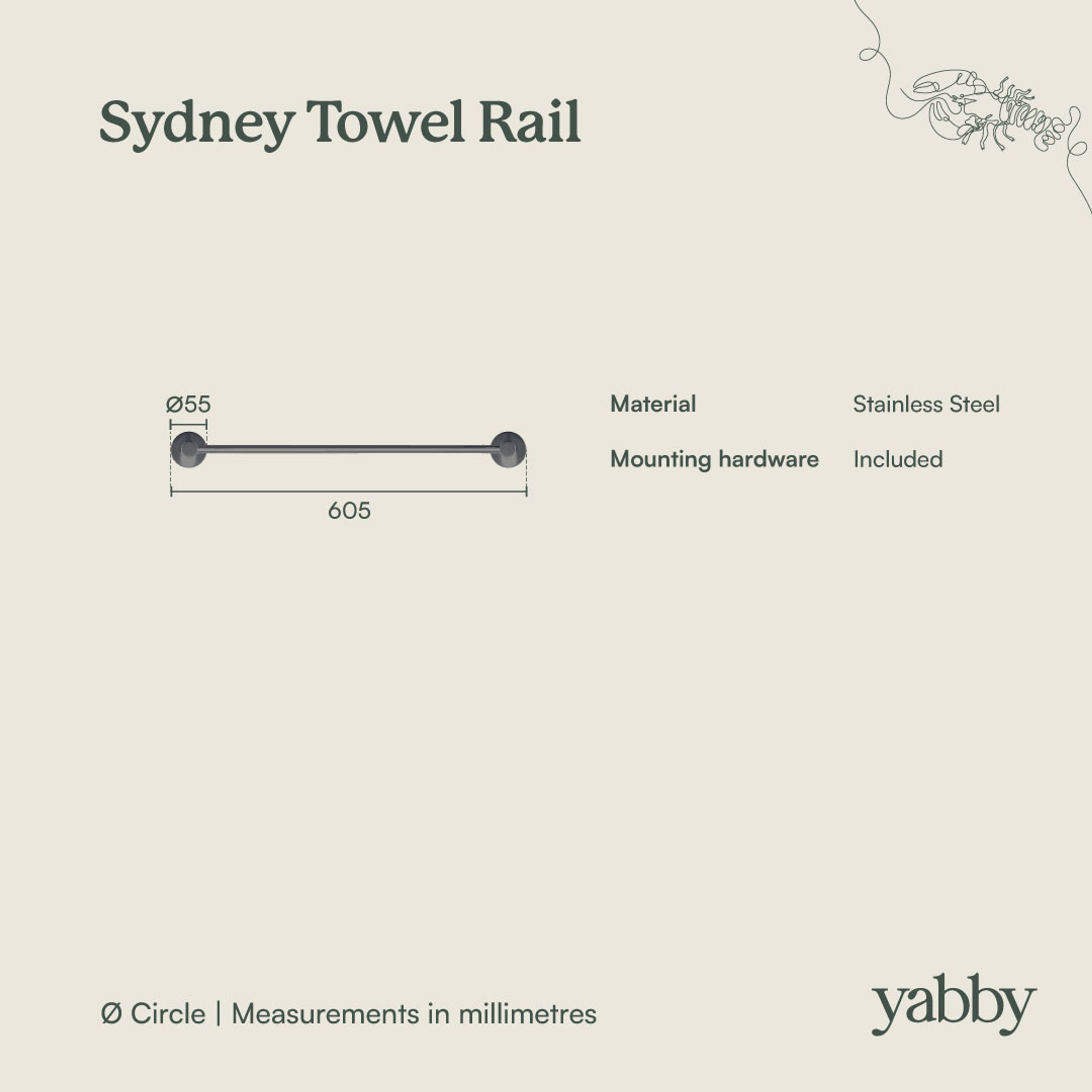 The Sydney Towel Rail in Warm Brushed Nickel (600mm) is ideal if you want a gentle metal finish that is easy to live with. The warm brushed texture helps hide marks, and the 600mm length works in most bathrooms. It is a sensible towel rail for keeping daily towels organised and dry.