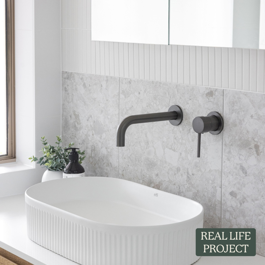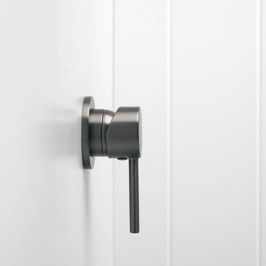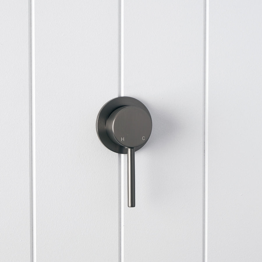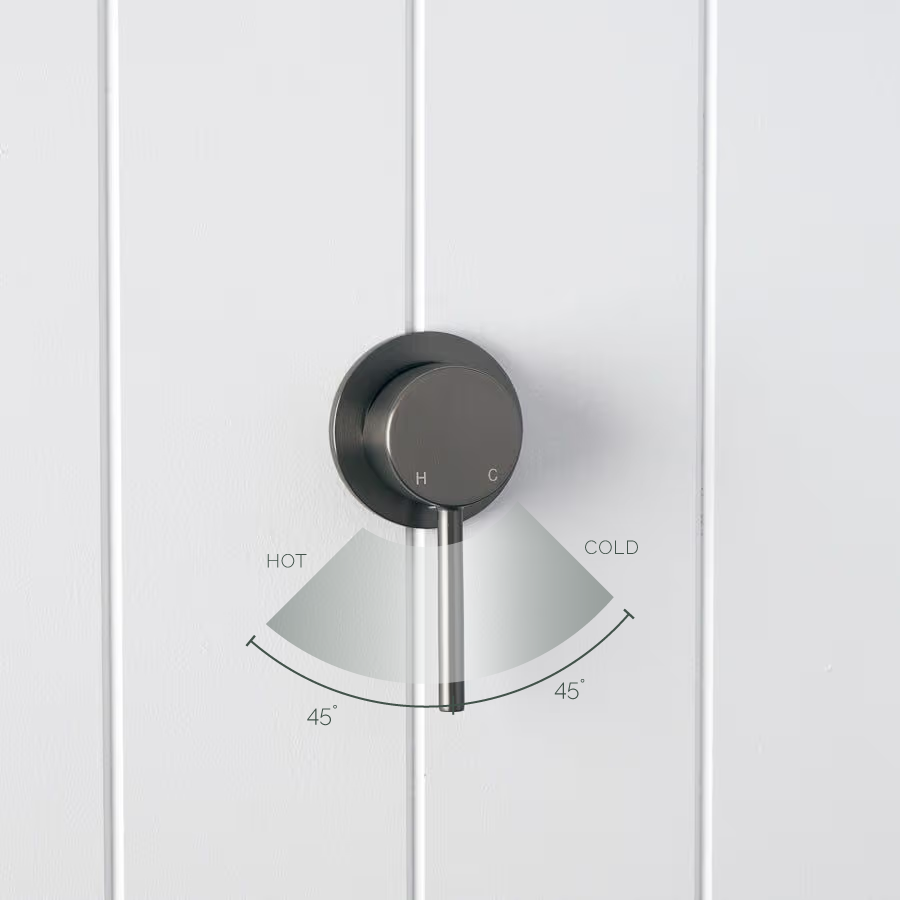 The Sydney Wall Mixer in Gunmetal suits renovators who like a darker metal finish with practical function. The sturdy stainless steel body handles daily use, and the single lever makes adjusting water temperature easy. Wall mounting keeps benchtops clear and helps reduce water pooling around tap bases.