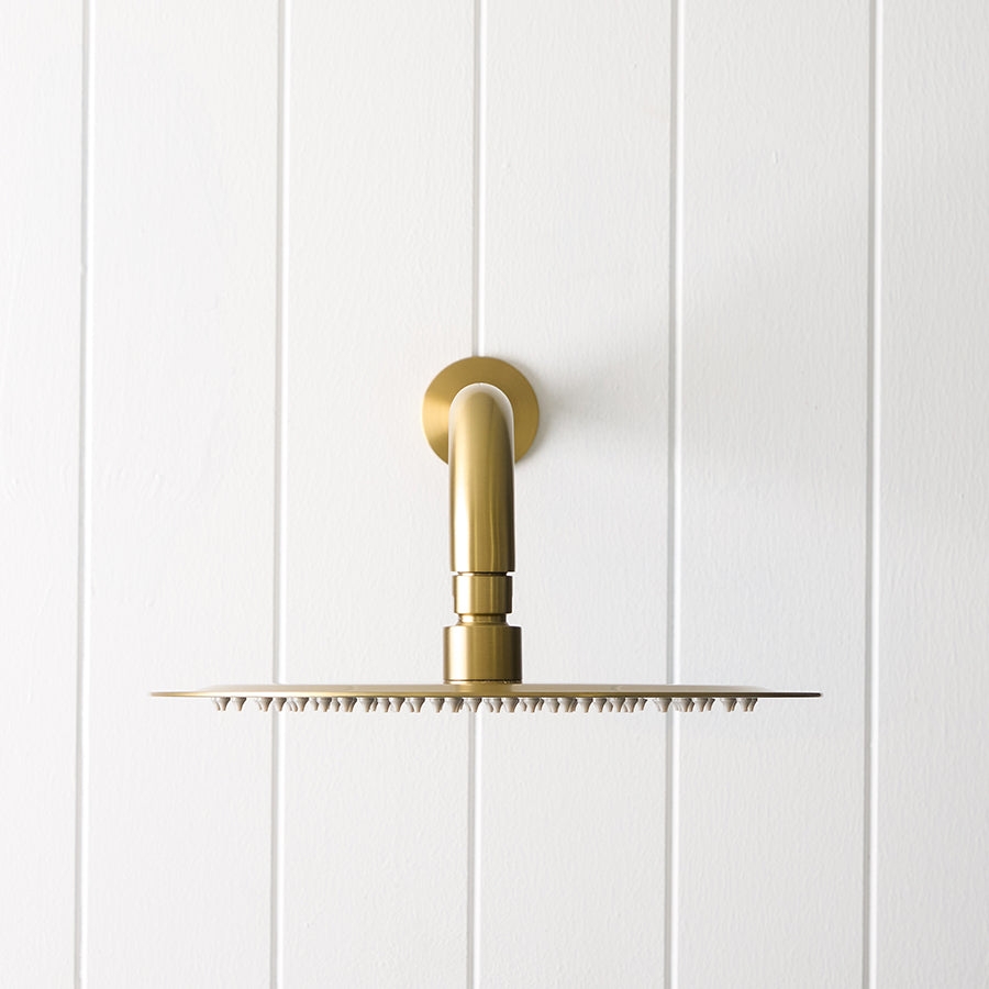 Wall Shower Arm and Head Brushed Brass 250mm