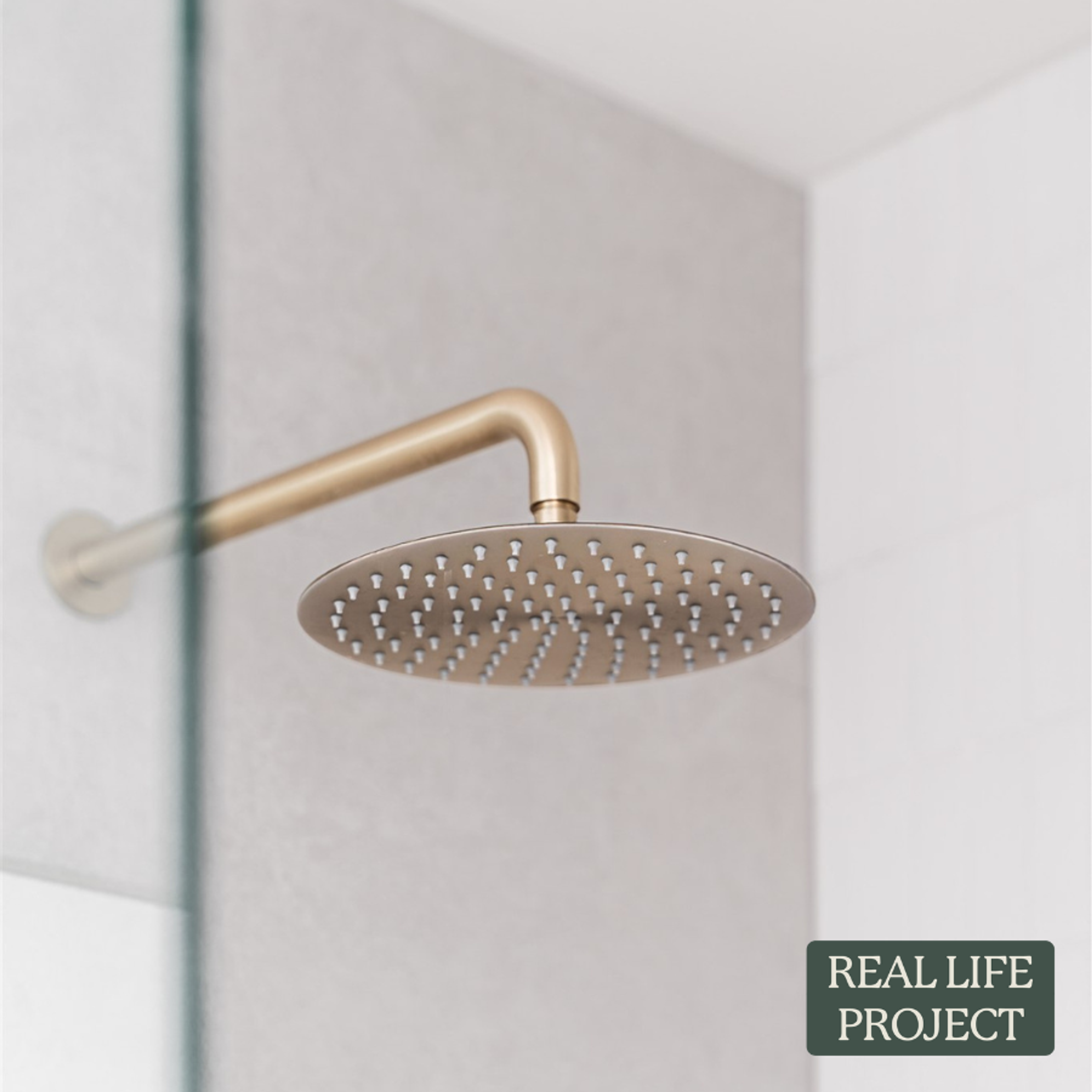 The Wall Shower Arm and Head in Warm Brushed Nickel offers a calm, neutral finish with reliable water coverage for everyday showers. Its stainless steel body with brushed coating helps hide fingerprints and water spots. It is ideal if you want one tapware finish that works across the whole house without feeling too bold.