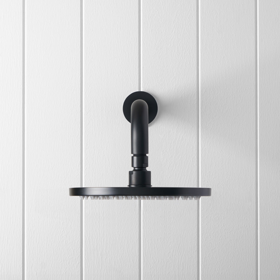 The Wall Shower Arm and Head in Matte Black delivers a consistent shower spray with a finish that feels modern and grounded. Stainless steel construction under the matte coating means it is tough enough for family bathrooms. It is a simple way to tie together other black tapware and hardware without blowing the budget.
