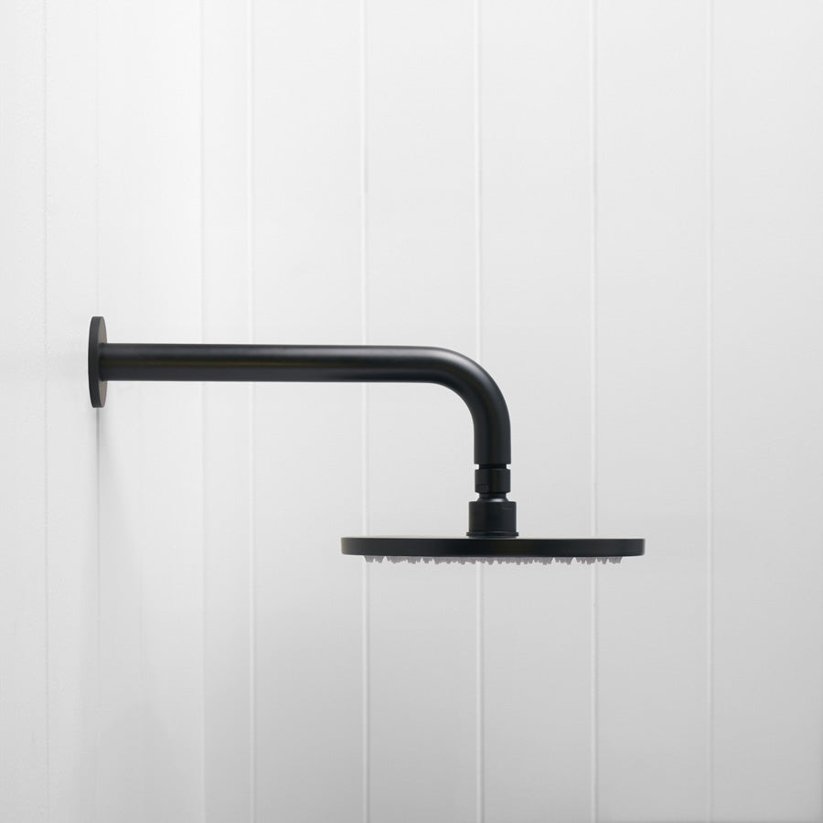 Wall Shower Arm and Head Matte Black 200mm