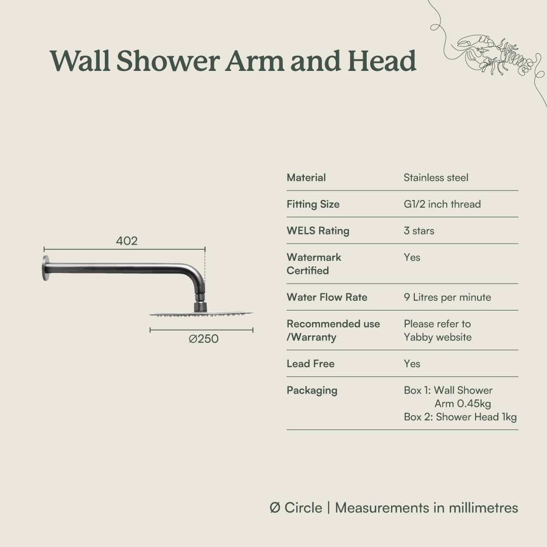 | Arm Length | 402 mm - wall shower |