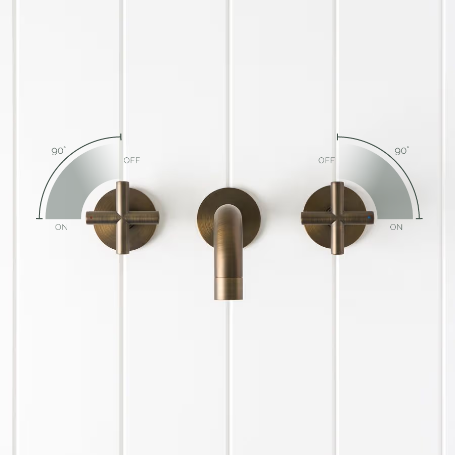 The Sydney Wall Spout and Cross Taps in Antique Brass is a practical choice if you like separate hot and cold taps. The stainless steel cross handles give good grip for kids and adults, and the wall spout keeps water flowing neatly into the basin or bath. It is a sturdy, long lasting tap set.