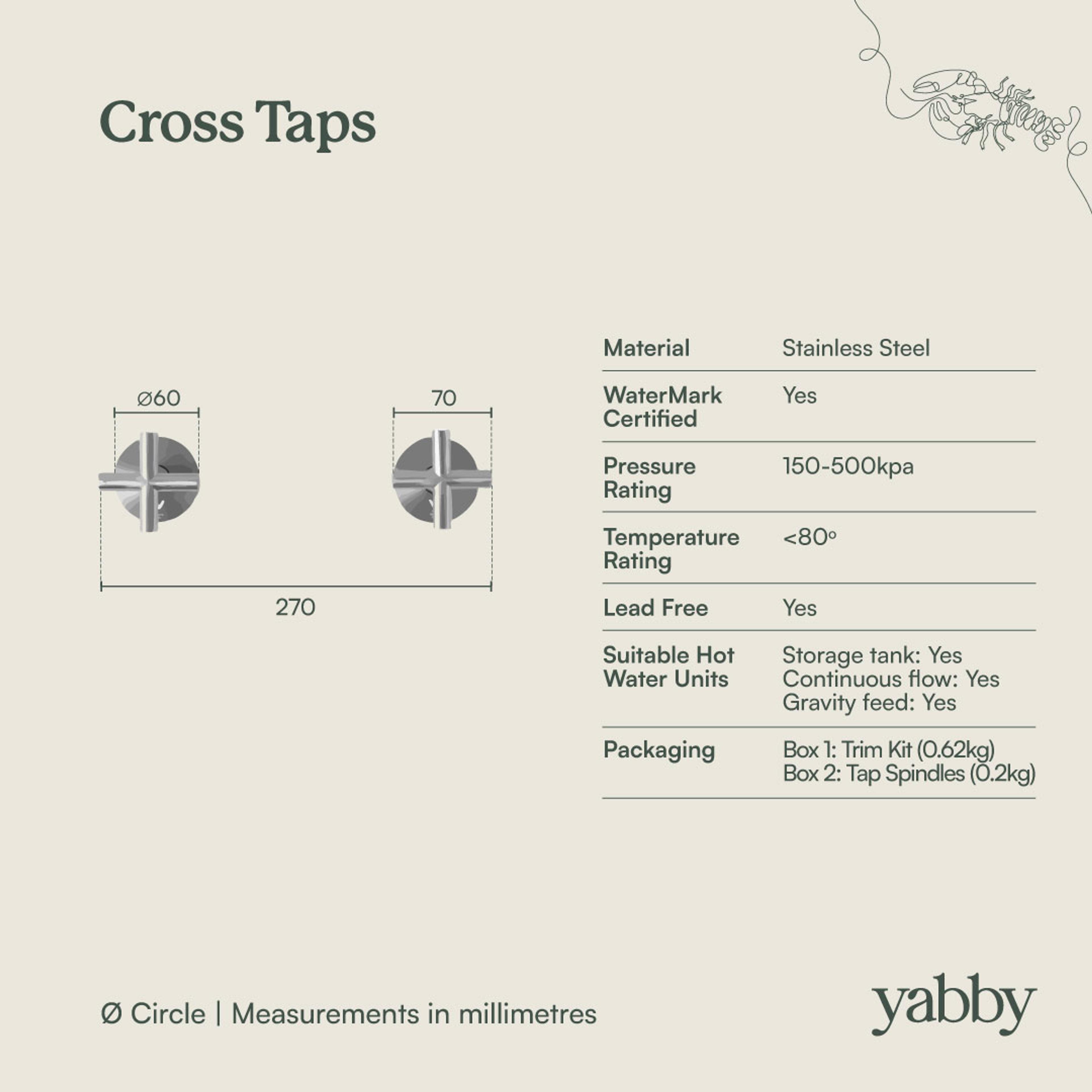 The Sydney Wall Spout and Cross Taps in Antique Brass is a practical choice if you like separate hot and cold taps. The stainless steel cross handles give good grip for kids and adults, and the wall spout keeps water flowing neatly into the basin or bath. It is a sturdy, long lasting tap set.