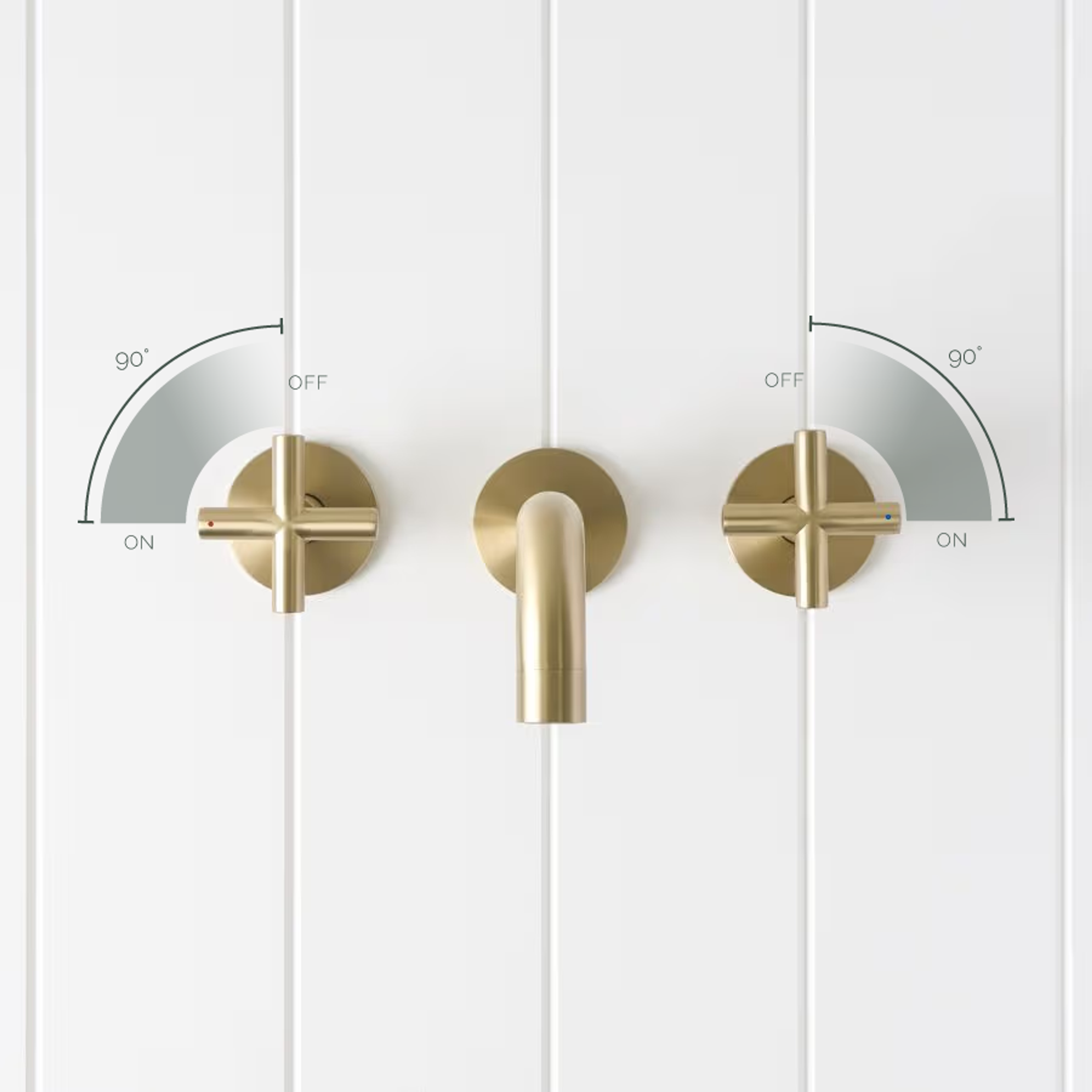 The Sydney Wall Spout and Cross Taps in Warm Brushed Nickel is ideal if you want a gentle metal finish that does not show every mark. The warm brushed surface is forgiving, and the cross taps provide easy grip for all ages. Wall installation keeps the basin edge clear for everyday use.