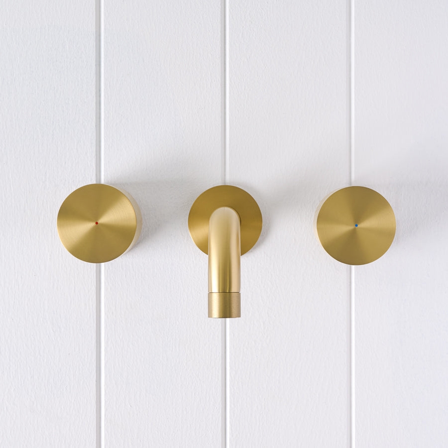 Sydney Wall Spout + Round Wall Taps Brushed Brass